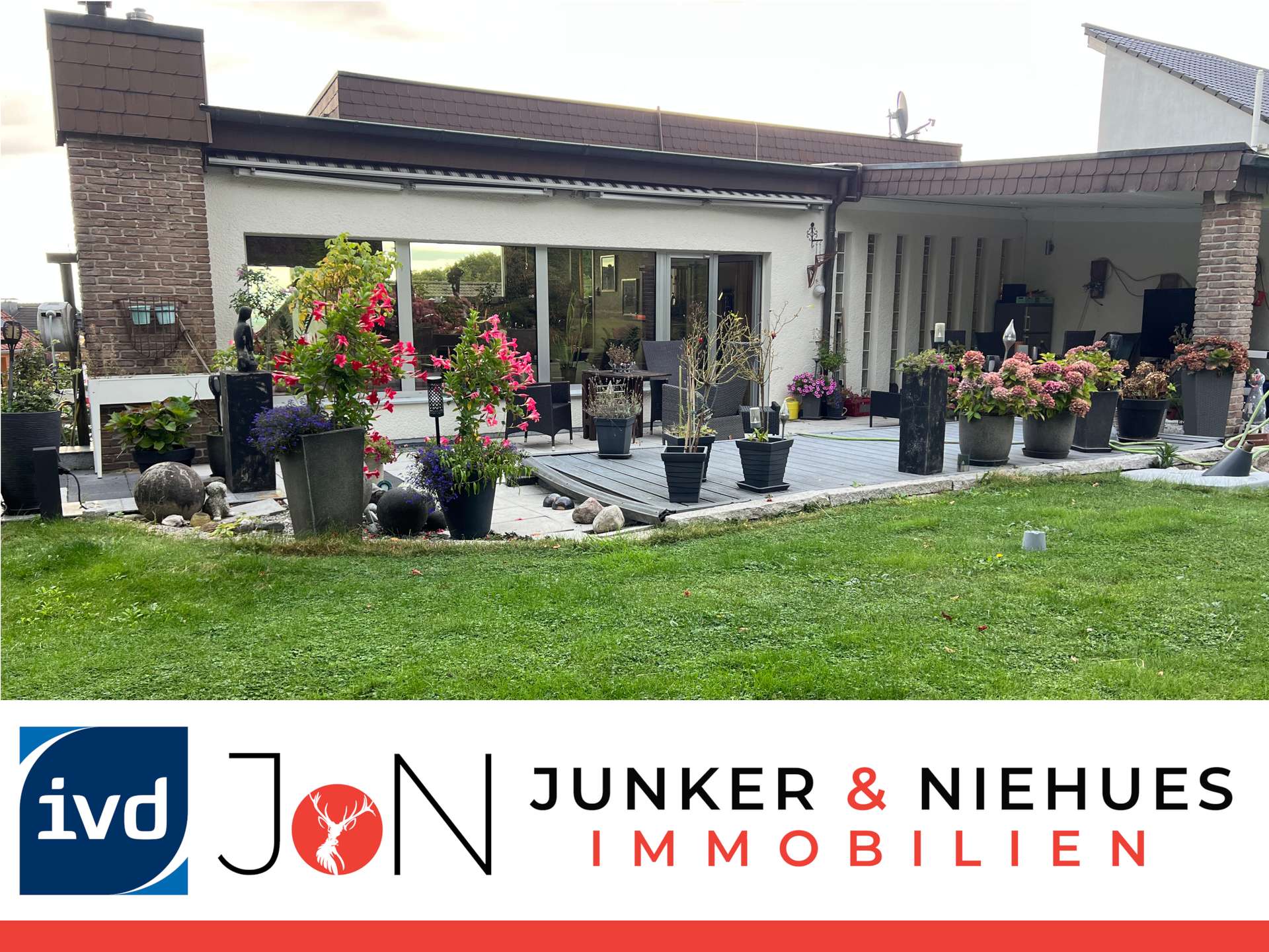 In ruhiger und gefragter Wohnlage von Oerlinghausen präsentiert sich dieses großzügige Einfamilienhaus, das durch seine besondere Bauweise in Hanglage und die durchdachte Raumaufteilung überzeugt. Mit insgesamt 6 Zimmern auf verschiedenen Ebenen bietet die Immobilie ideale Voraussetzungen für Familien, die Wert auf Raum, Komfort und ein naturnahes Umfeld legen. Im Erdgeschoss erwartet Sie ein lichtdurchflutetes Wohnzimmer, das durch seine Großzügigkeit vielfältige Gestaltungsmöglichkeiten bietet. Direkt angrenzend liegt das separate Esszimmer – perfekt für gesellige Abende und Familienessen. Die Küche ist funktional geschnitten und bietet kurze Wege. Darüber hinaus befinden sich auf dieser Ebene ein Büro, zwei Dielenbereiche, ein Abstellraum sowie ein praktisches Gäste-WC.