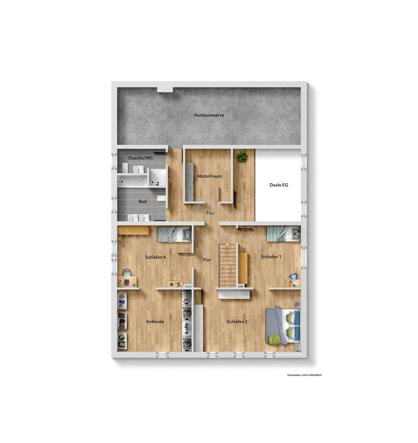 Ein weiteres, besonders attraktives Merkmal dieser Wohnung ist die großzügige Ausbaureserve von ca. 100 m² Nutzfläche, die ebenfalls über den Flur im Dachgeschoss erreichbar ist. Diese Fläche eröffnet ein erhebliches Potenzial zur Erweiterung der bestehenden Räumlichkeiten und kann zu zusätzlichen Hobbybereich ausgebaut werden. Damit bietet die Immobilie nicht nur einen hohen aktuellen Nutzwert, sondern auch eine langfristige Perspektive mit flexiblen Entwicklungsmöglichkeiten für zukünftige Lebensphasen.