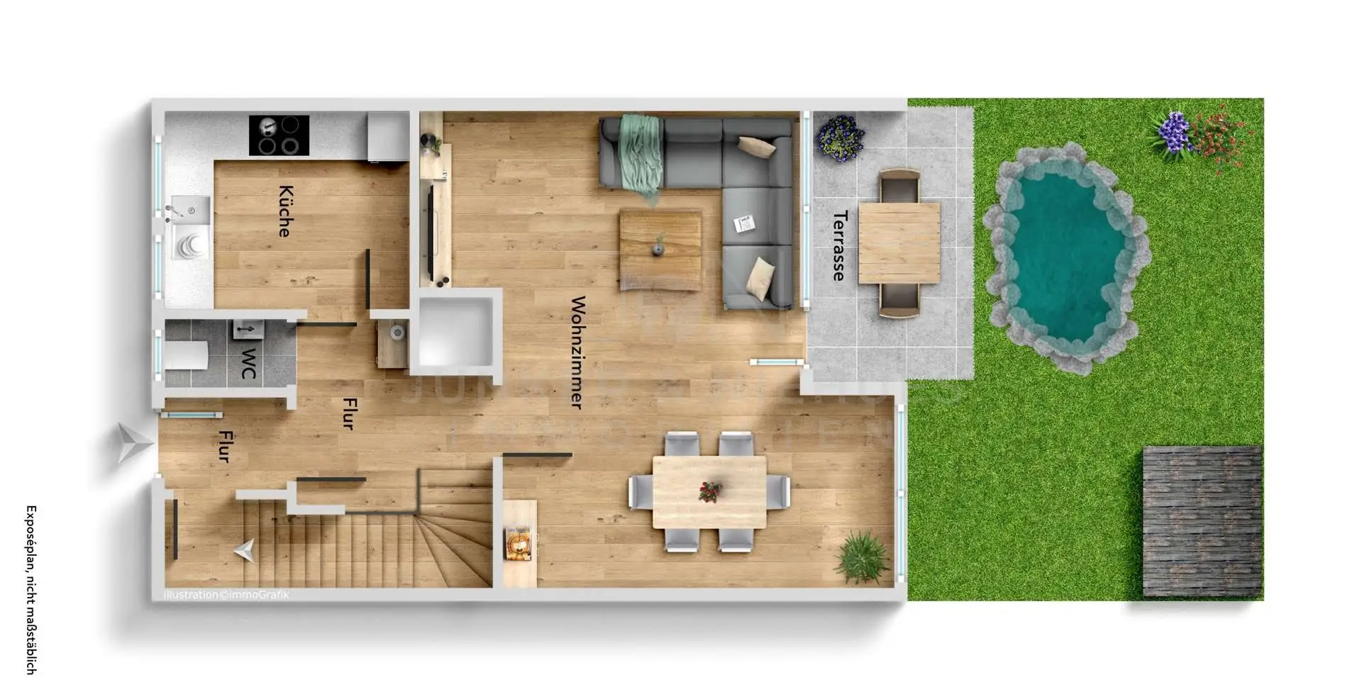 Mit seiner durchdachten Aufteilung bietet das Reihenmittelhaus eine ideale Grundlage, um Ihre persönlichen Wohnideen zu verwirklichen. Gestalten Sie dieses einladende Zuhause nach Ihren Wünschen und schaffen Sie einen Ort für viele neue Erinnerungen.