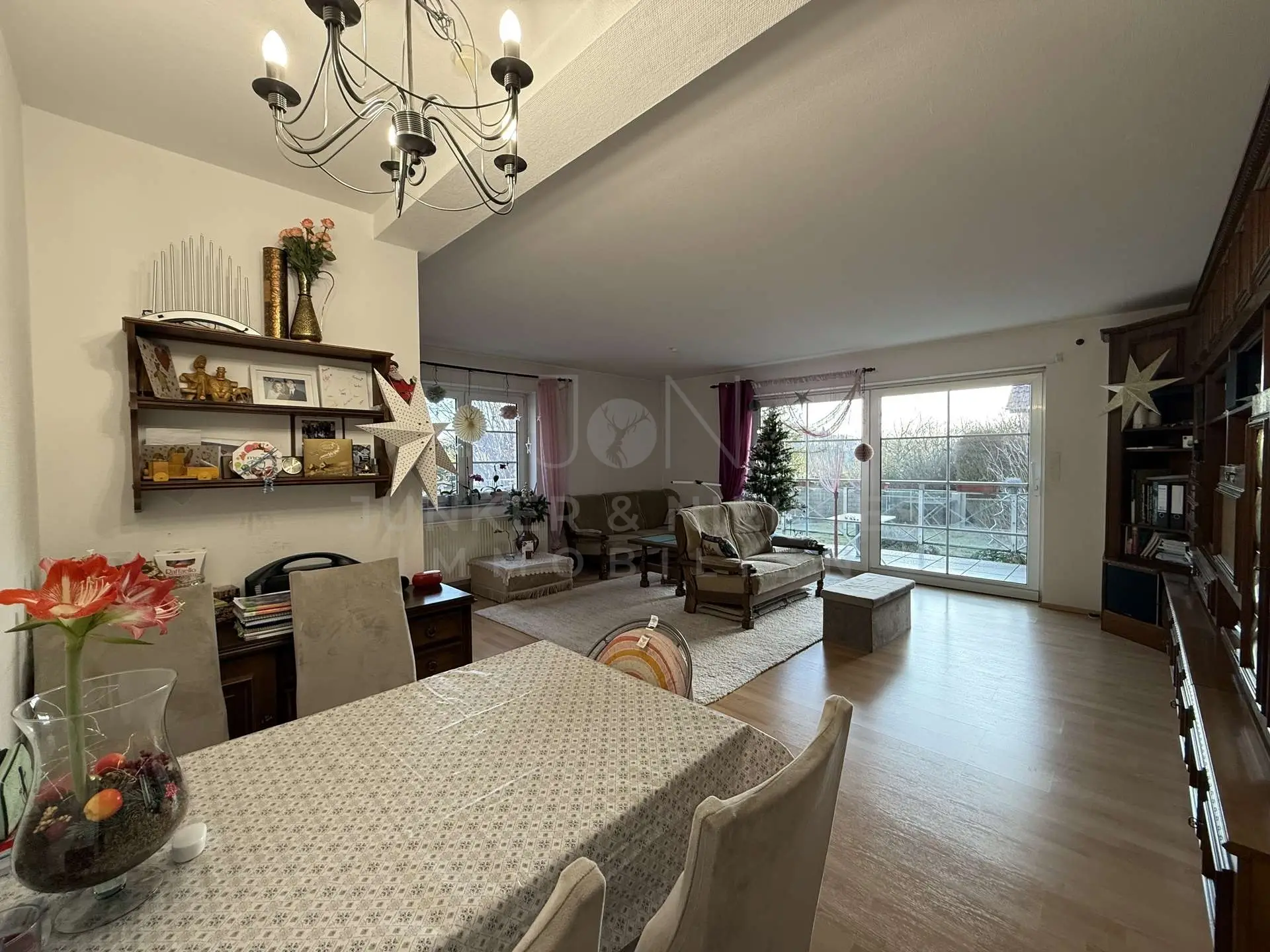 Das Herzstück der Wohnung bildet der großzügige Wohn- und Essbereich mit Zugang zur separaten Küche. Durch die weitläufige Gestaltung entsteht ein helles, freundliches Raumgefühl mit vielfältigen Einrichtungsmöglichkeiten. Der Wohnbereich bietet direkten Zugang zum großen Balkon, der den Wohnraum nach außen erweitert und zum Entspannen einlädt.