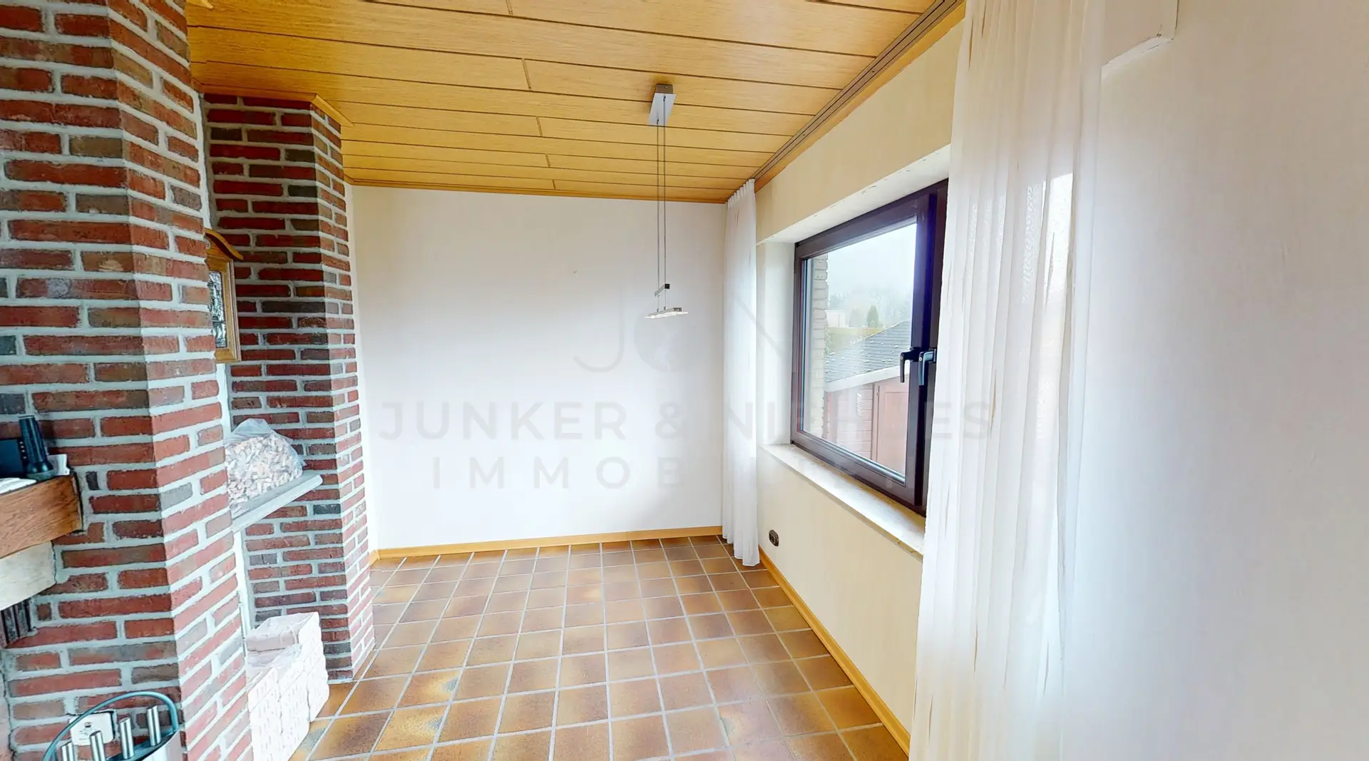 Im Erdgeschoss empfängt Sie eine großzügige Diele mit einer hochwertigen Treppe aus Travertin/Marmor, die ins Obergeschoss führt. Hier befindet sich außerdem ein Gäste-WC. Die separate Küche bietet ausreichend Platz für eine moderne Einbauküche und ist ideal für Hobbyköche geeignet. Der großzügige Wohn- und Essbereich beeindruckt durch seine Offenheit und einen Kamin mit moderner Heizkassette, der in der kalten Jahreszeit für eine gemütliche Atmosphäre sorgt. Von hier aus gelangen Sie direkt auf die sonnige Terrasse und in den liebevoll angelegten Garten, der viel Raum für Erholung und Freizeitaktivitäten bietet.