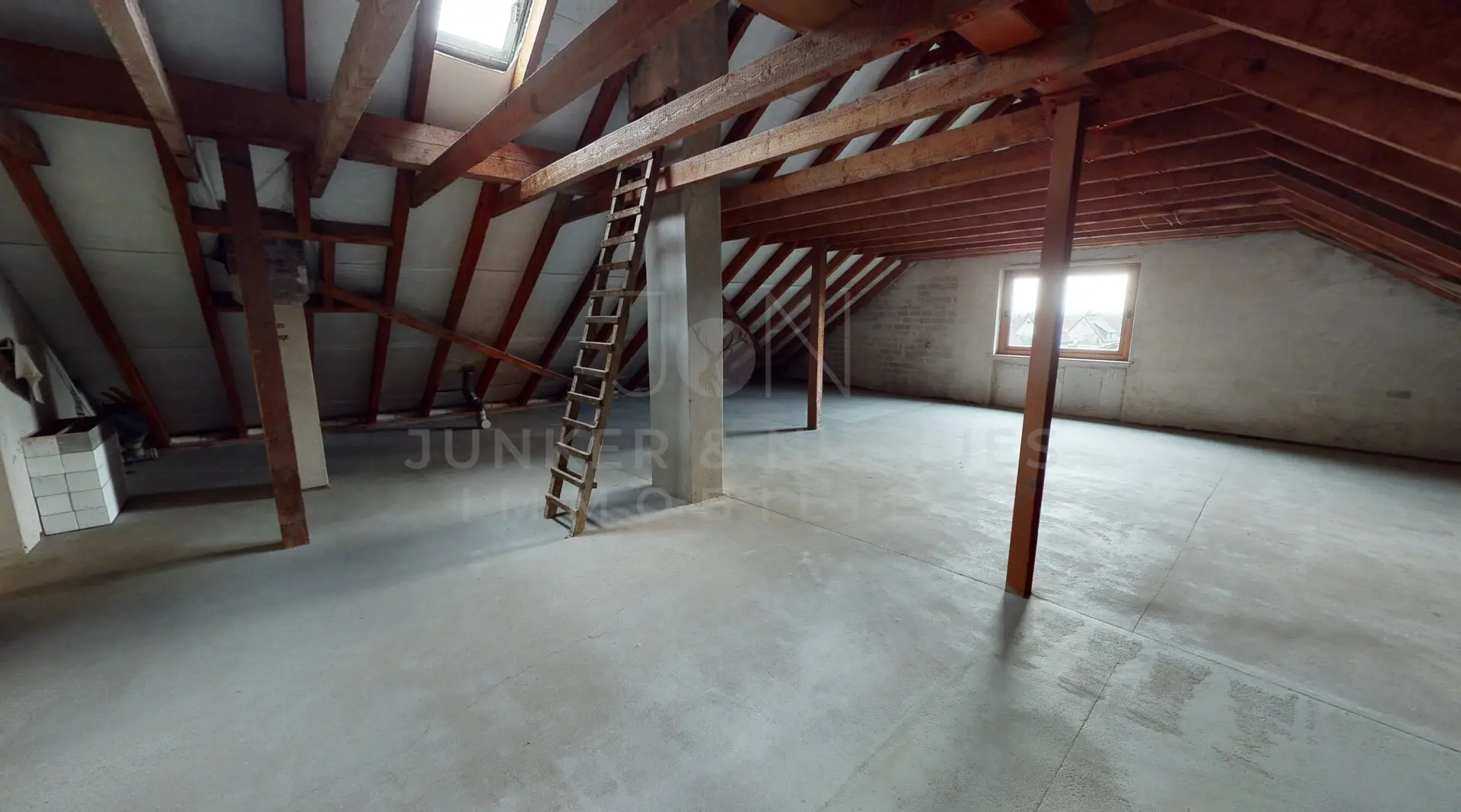 Im Dachgeschoss gibt es eine ca. 100 m² große Fläche, die ggf. ausgebaut werden kann.