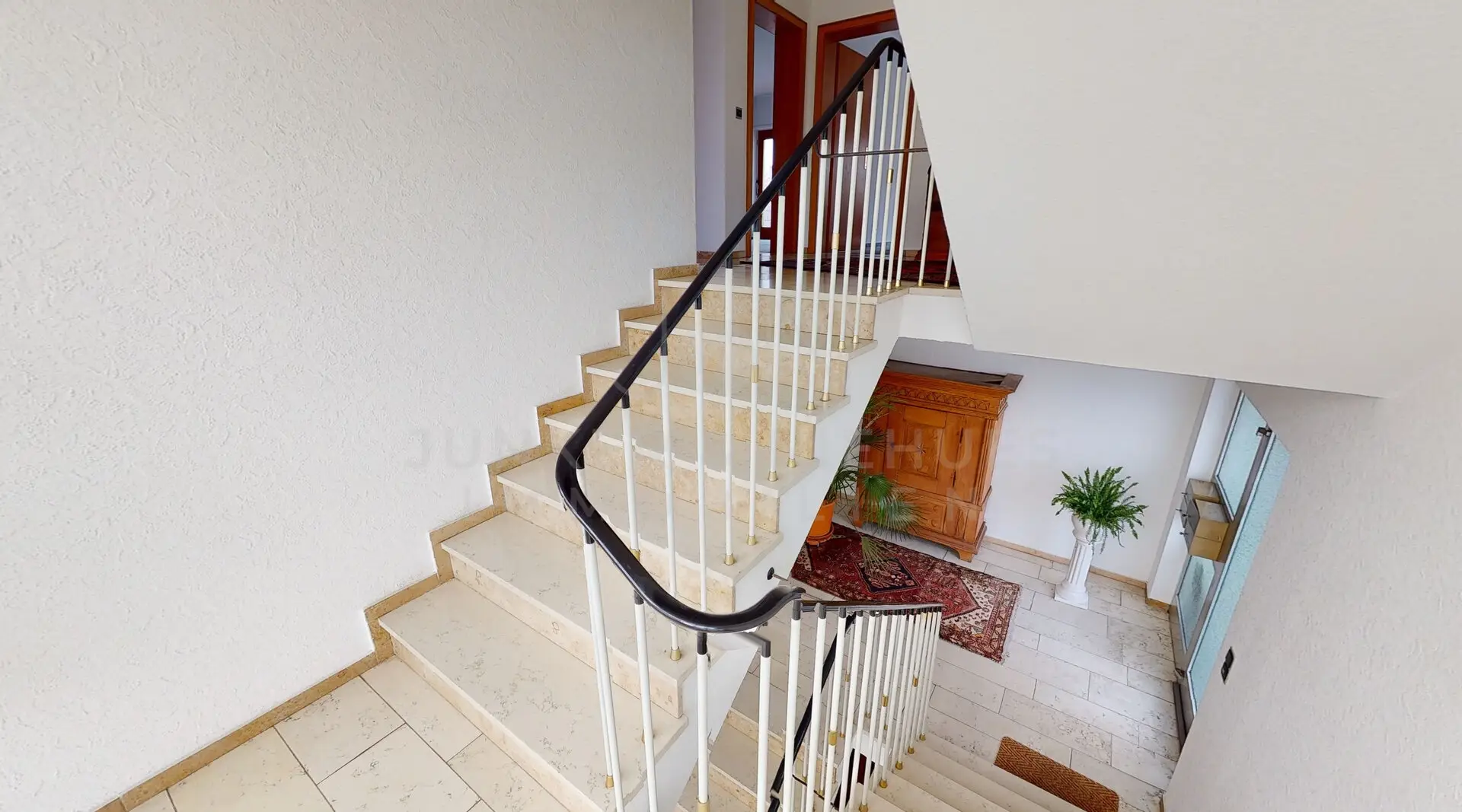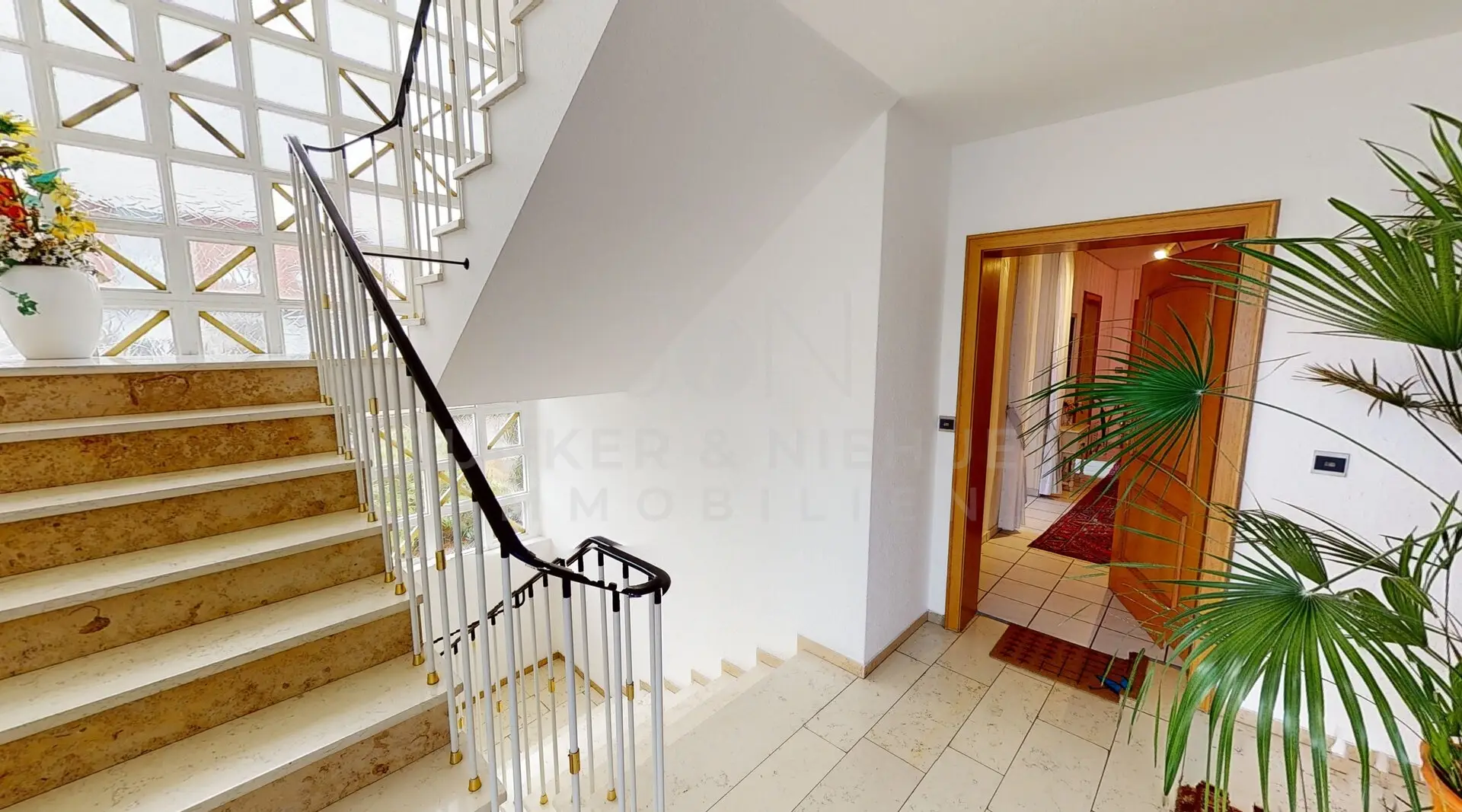 Durch die Haustür betreten Sie das geräumige Treppenhaus. Von hier erreichen Sie die Wohnung im Erdgeschoss, die Wohnung im Obergeschoss und den ausbaufähigen Dachboden sowie den Vollkeller.