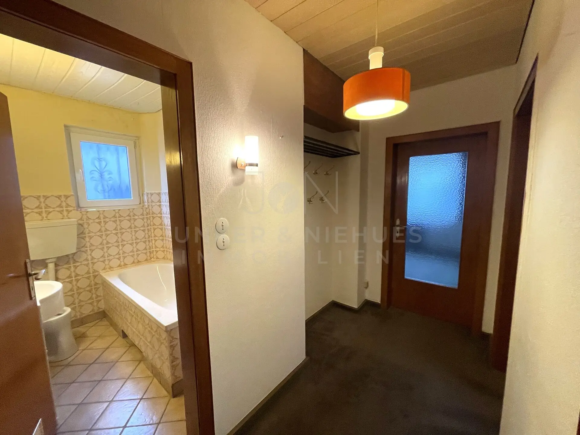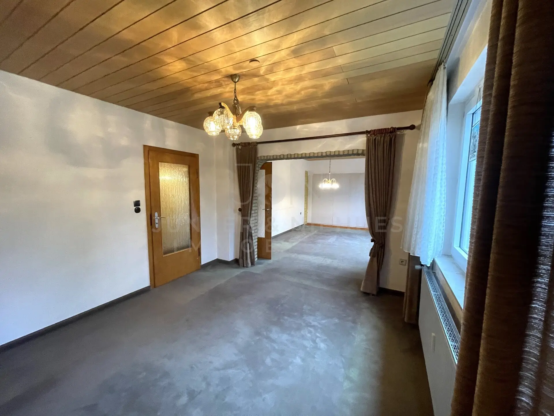 Die individuelle Aufteilung der Einheiten eignet sich ideal für die große Familie oder für das Wohnen mit mehreren Generationen unter einem Dach. Über das gemeinsame Treppenhaus sind beide Einheiten sowie der Vollkeller zu erreichen. Das ca.1958 erbaute Gebäude verfügt über rund 160 qm Wohnfläche verteilt auf zwei Etagen. Im Erdgeschoss befinden sich 3 Zimmer zzgl. Küche und Tageslichtbad mit Duschwanne. Besonders ist das große Wohnzimmer hervorzuheben und auch der direkte Zugang zur Terrasse wird Sie begeistern. Von dort aus gelangen Sie in den weitläufigen Garten. Hier können Sie sich ihr persönliche Oase schaffen. Es gibt genügend Platz zum toben und auch zum verweilen. Ein Traum für jede Familie mit Kindern oder für den Gartenliebhaber.