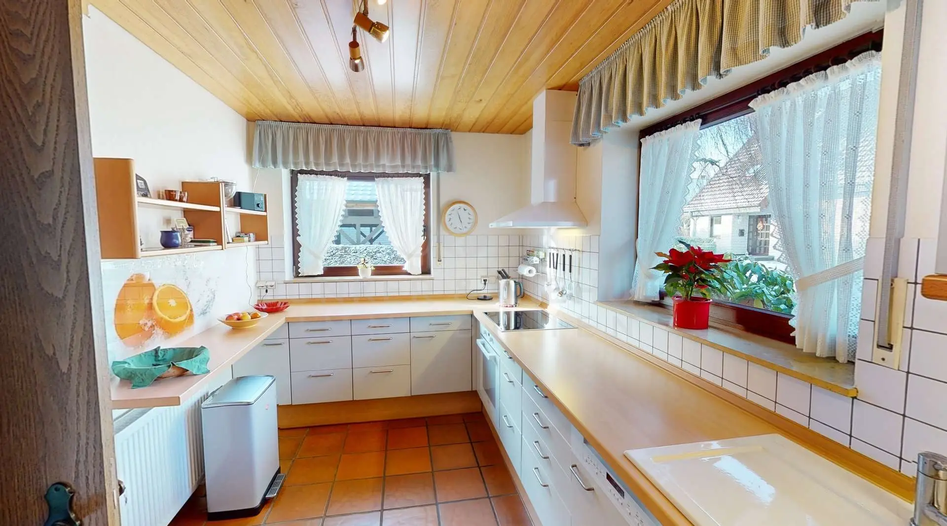 Besonders hervorzuheben ist der gemütliche Kachelofen, der an kalten Tagen für wohlige Wärme sorgt. Zudem lädt die Terrasse im Außenbereich zum Entspannen und Verweilen ein.