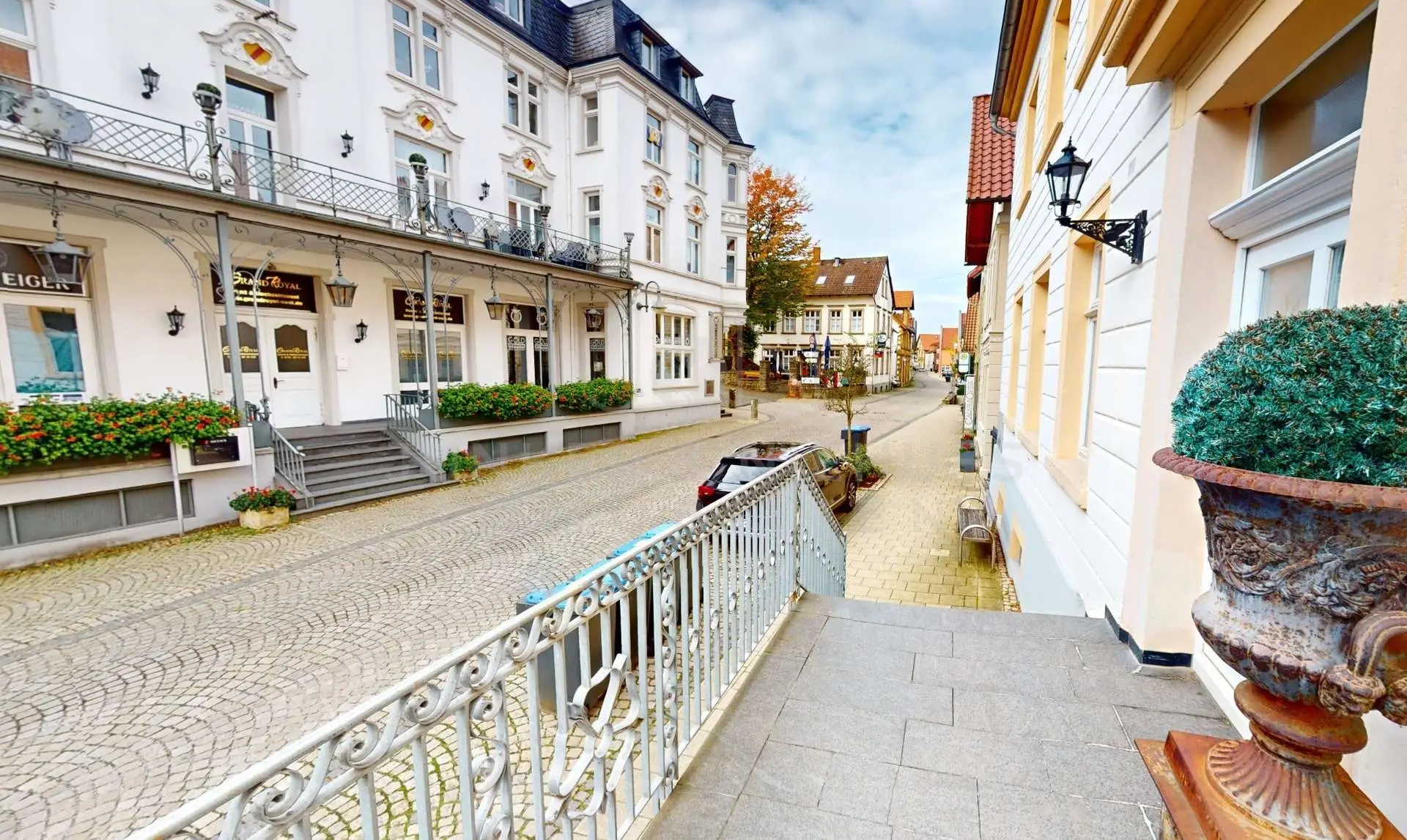 Besonders hervorzuheben sind die zwei eigenen Eingänge, die ein hohes Maß an Flexibilität bieten: Einerseits gibt es einen Zugang auf der Seite der Stellplätze mit einem Fahrstuhl, der den Zugang von den Parkmöglichkeiten besonders komfortabel macht. Andererseits ist der zweite Eingang über eine elegante Außentreppe "Hauptstraße 32" erreichbar. Die beiden Stellplätze direkt am Objekt ermöglichen komfortables und unkompliziertes Parken für Bewohner und Besucher gleichermaßen.