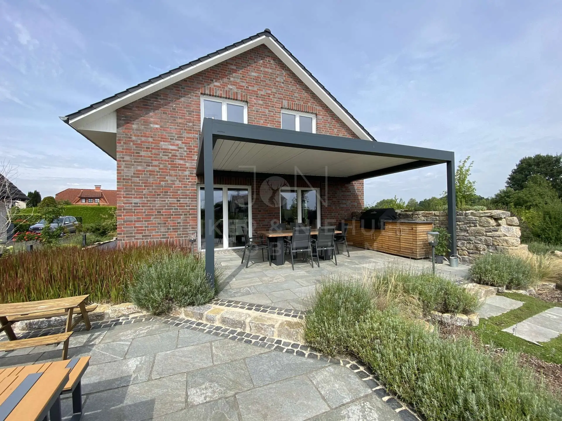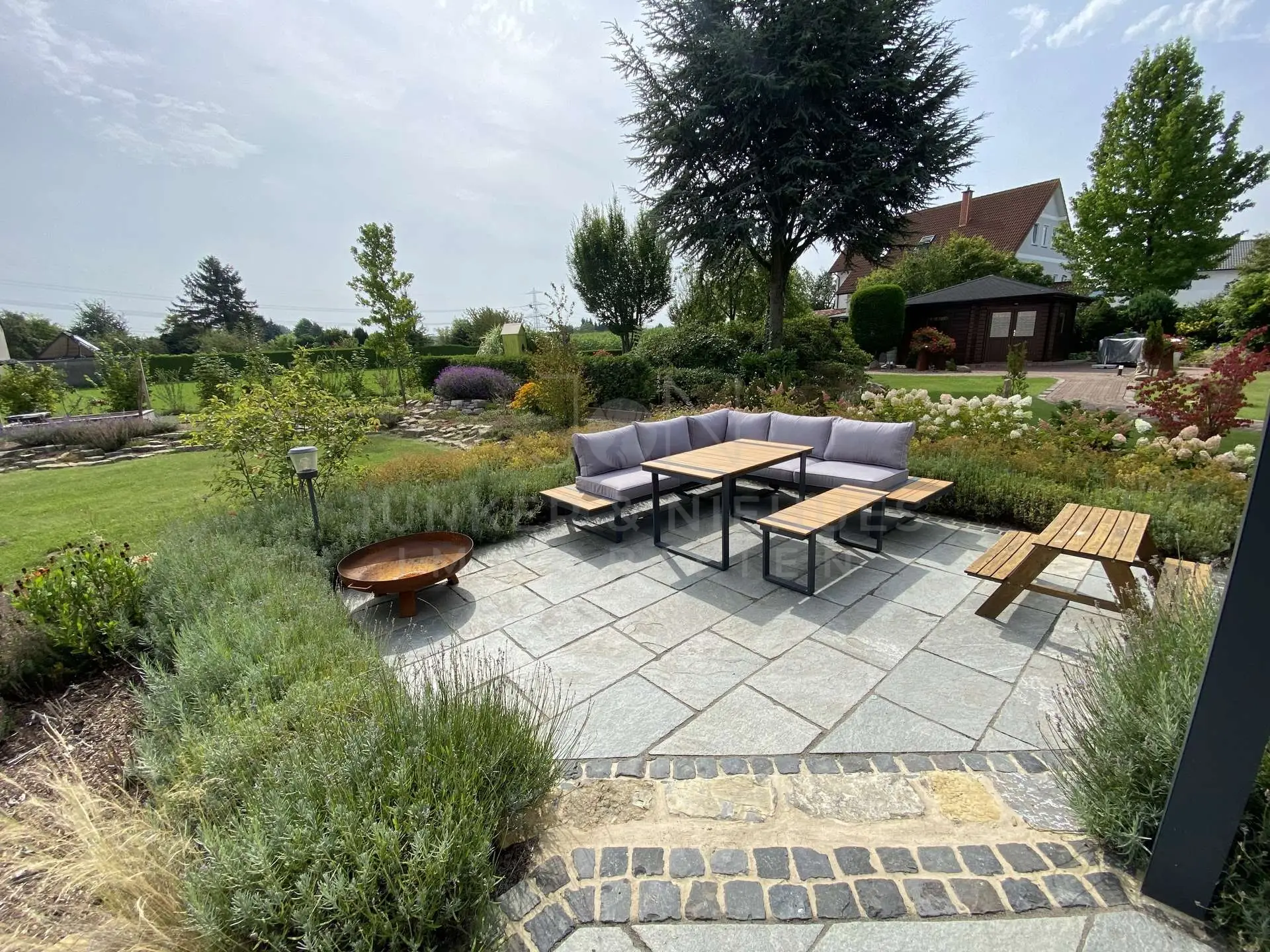 Der spektakuläre Garten ist ein Highlight dieses Anwesens und bietet einen atemberaubenden Blick sowie vielseitige Nutzungsmöglichkeiten. Dieser ist mit Natursteinen angelegt und beeindruckt mit zwei Terrassen und bietet zahlreiche kleine, versteckte Beete. Genießen Sie den atemberaubenden Blick über die Felder und die Ruhe, die dieser idyllische Rückzugsort ausstrahlt. Eine 8m³ Zisterne mit verschiedenen Zapfstellen im Garten ermöglicht effiziente Gartenbewässerung. Die elektrische Überdachung der Terrasse sorgt für maximalen Komfort bei jedem Wetter.