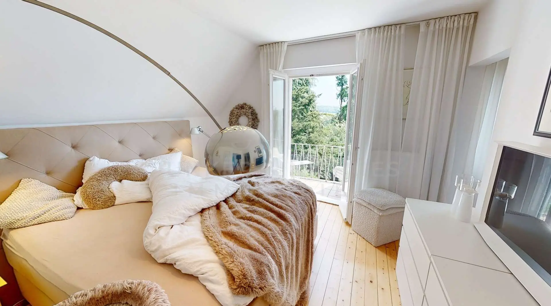 Das Haus verfügt über insgesamt drei gut geschnittene Zimmer, darunter zwei gemütliche Schlafzimmer. Besonders hervorzuheben ist das Hauptschlafzimmer mit direktem Zugang zu einer praktischen Ankleide – eine durchdachte Lösung für mehr Komfort und Ordnung.
