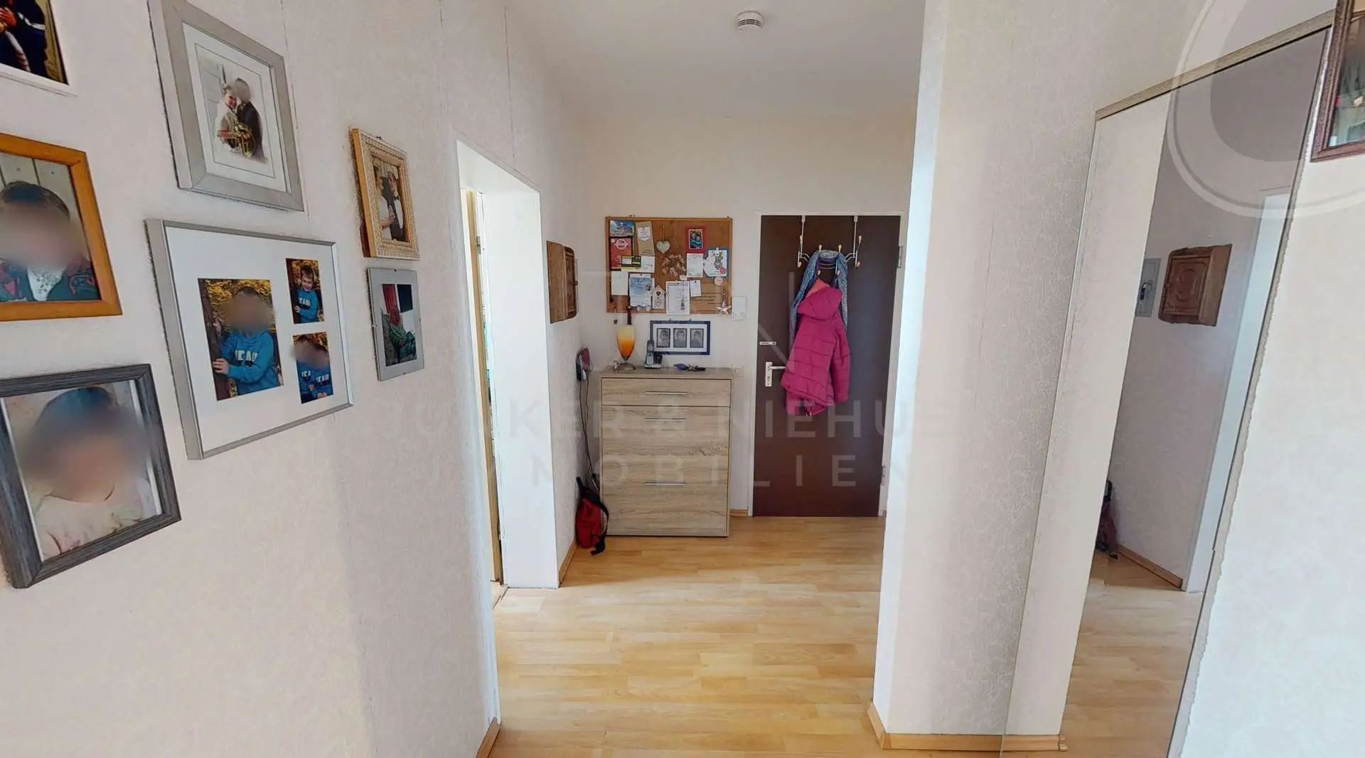 Die Räume sind lichtdurchflutet gestaltet, was eine angenehme Atmosphäre schafft und den Wohnkomfort erhöht. Die klare Aufteilung der Wohnung bietet gute Voraussetzungen für eine individuelle Einrichtung und optimale Nutzung der Flächen.
