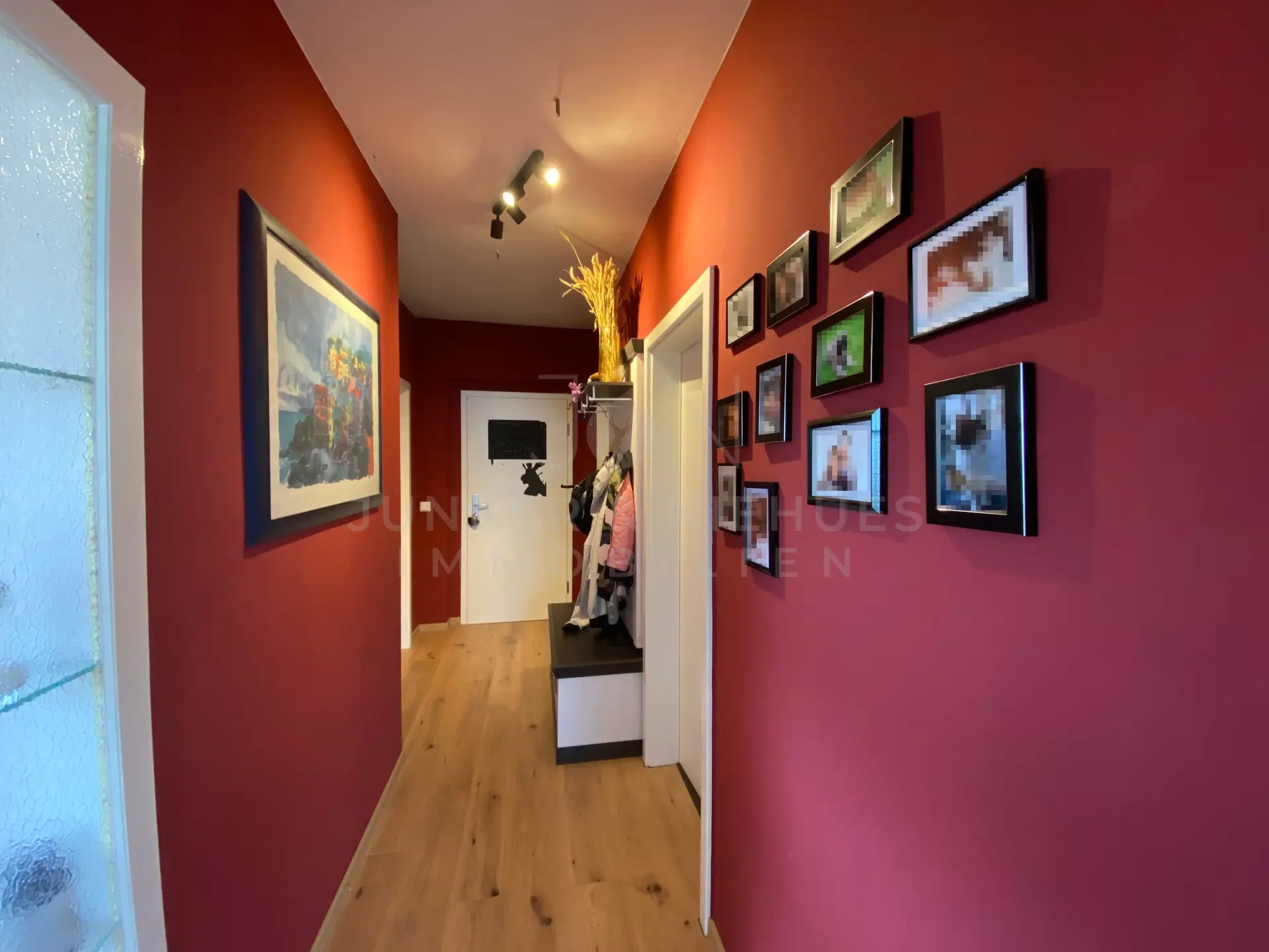 Die rund 75m² Wohnfläche sind clever auf insgesamt 3 Zimmer, Küche und Bad aufgeteilt. Vom Treppenhaus aus werden Sie herzlich in einer kleinen Diele in Empfang genommen. Von hier aus können Sie jedes Zimmer erreichen. Gleich am Fluranfang befindet sich ein schönes Tageslichtbad mit Eckbadewanne und Dusche. Dieses ist sehr hell und zeitlos gestaltet. Auf der anderen Flurseite befindet sich ein kompaktes Kinderzimmer/ Büro und das gemütliche Schlafzimmer. Von beiden Zimmern aus, haben Sie direkten Zugang zum Balkon. Das Highlight dieser Wohnung ist die offene Wohnküche mit einem weiteren Balkon.