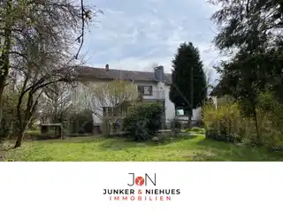 Hier bietet sich Ihnen ein Stück Gesichte. Dieses Gebäude wurde ca. 1883 erbaut und seitdem erweitert. Es handelt sich um ein Zweifamilienhaus mit zwei Etagen. Auf ca. 267 m² Wohnfläche verteilen sich fünf Schlafzimmer, zwei Bäder, zwei Küchen, zwei Wohnzimmer und zwei separate Esszimmer. Im Erdgeschoss gelangt man über das Wohnzimmer und über das Esszimmer auf die Terrasse und somit in den Garten. Im Obergeschoss stehen zwei Balkone zur Verfügung. Zu dem Haus gehören zwei Garagen neben dem Haus. Das Grundstück beinhaltet zwei Flurstücke. Auf den hinteren Grundstücken könnte eine Gewerbebebauung möglich sein.