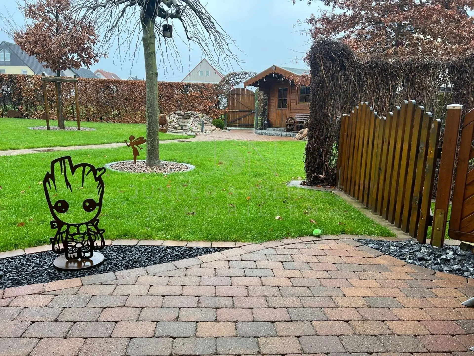 Das Grundstück ist ein absolutes Highlight: Ein idyllischer künstlicher Bachlauf und eine Gartenhütte schaffen eine einzigartige Atmosphäre und bieten viel Platz für Gartenfreunde oder Kinder zum Spielen. Die große Garage bietet nicht nur ausreichend Platz für Fahrzeuge, sondern kann auch als Werkstatt genutzt werden. Zusätzlich punktet das Haus mit einer neuen, modernen Küche, die perfekt auf die Bedürfnisse des Alltags abgestimmt ist und eine Wasserenthärtungsanlage. Ein Glasfaseranschluss der Telekom ist auch bereits vorhanden.