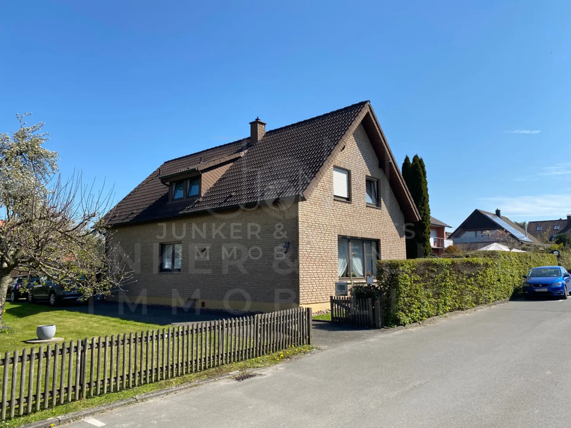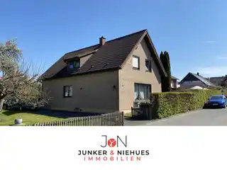 Beziehen Sie Ihr neues Eigenheim in Leopoldshöhe! Hier wird es Ihnen und Ihrer Familie an nichts fehlen. Auf zwei Etagen befinden sich insgesamt fünf Zimmer, zzgl. Küche, Gäste-WC und Badezimmer. Insgesamt stehen Ihnen ca. 158 m² Wohnfläche zur Verfügung. Der Eingangsbereich verfügt über eine große, einladende Diele über die Sie die umliegenden Räume und das Dachgeschoss erreichen. Von Dort gelangen Sie in die große Küche und das sonnige Wohnzimmer mit Essbereich. Hierrüber gelangen Sie auch in den Garten. Der Wohnung sind 196 m² Gartenanteil zugeordnet. Das Dachgeschoss verfügt über zwei große und gemütliche Schlafzimmer, eines mit eigenem Ankleidezimmer. Zudem befindet sich dort das tageslichthelle Badezimmer.