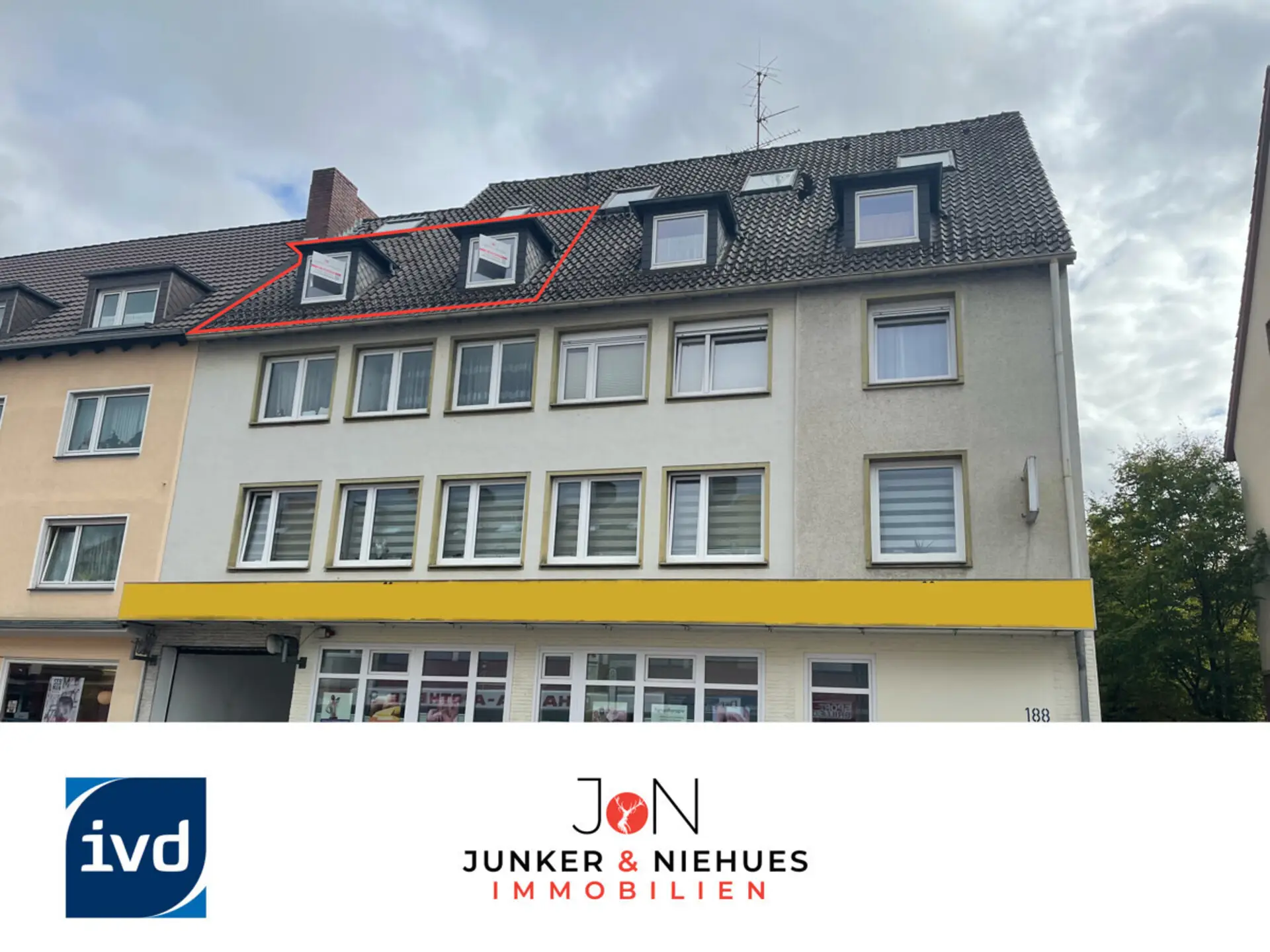 Diese Zweizimmer-Dachgeschosswohnung befindet sich in guter Lage von Bielefeld. Im Eingangsbereich befindet sich die Garderobe sowie das Gäste-WC. Von dort aus gelangt man in das große Wohn- und Esszimmer, über das man auch den Balkon erreicht. Das gemütliche Schlafzimmer grenzt an. Das Badezimmer verfügt über eine Dusche sowie eine Badewanne. Die Einbauküche ist im Angebot enthalten. Der Stellplatz und der Kellerraum runden das Angebot ab.
