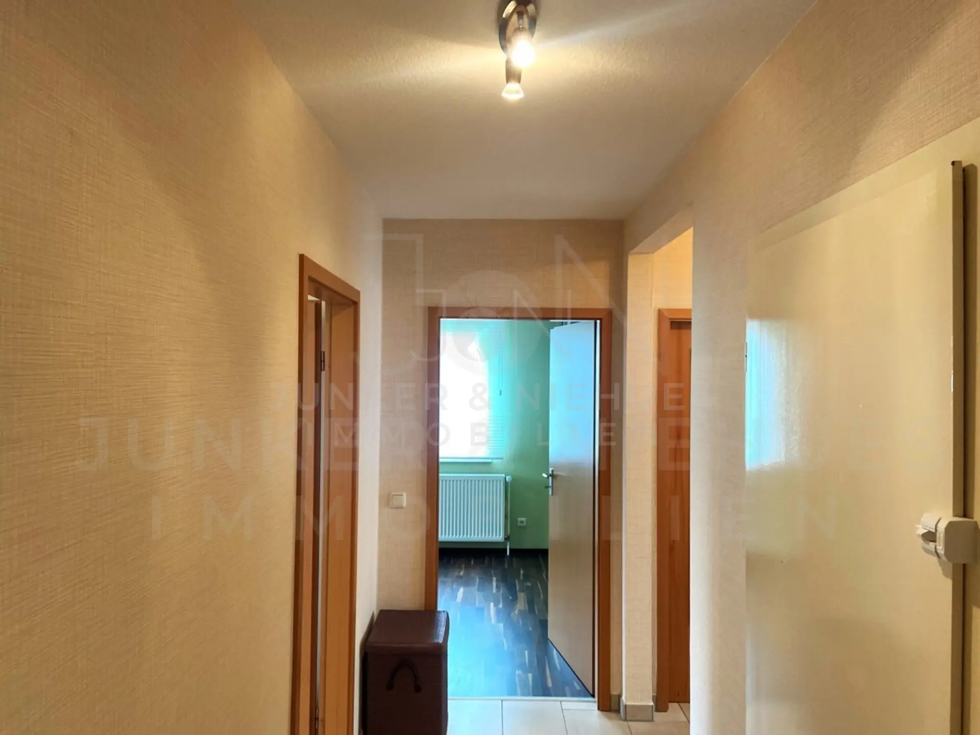 Der großräumige Flur bietet Ihnen mit seiner Räumlichkeit und den bodentiefen Fenstern Platz für ein offenes Büro oder als Lesebereich zum Entspannen.