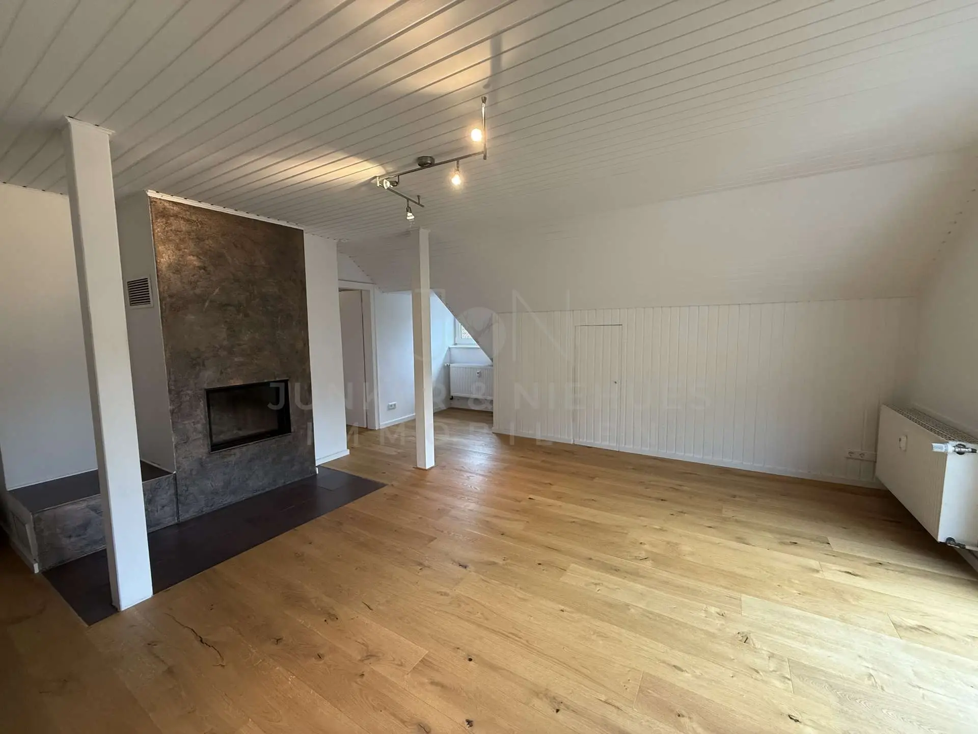Die Wohnung befindet sich im Dachgeschoss eines gepflegten Mehrfamilienhauses und begeistert durch ihre großzügige Offenheit, viel natürliches Licht und die stilvolle Kombination aus modernen Elementen und gemütlichen Dachschrägen.