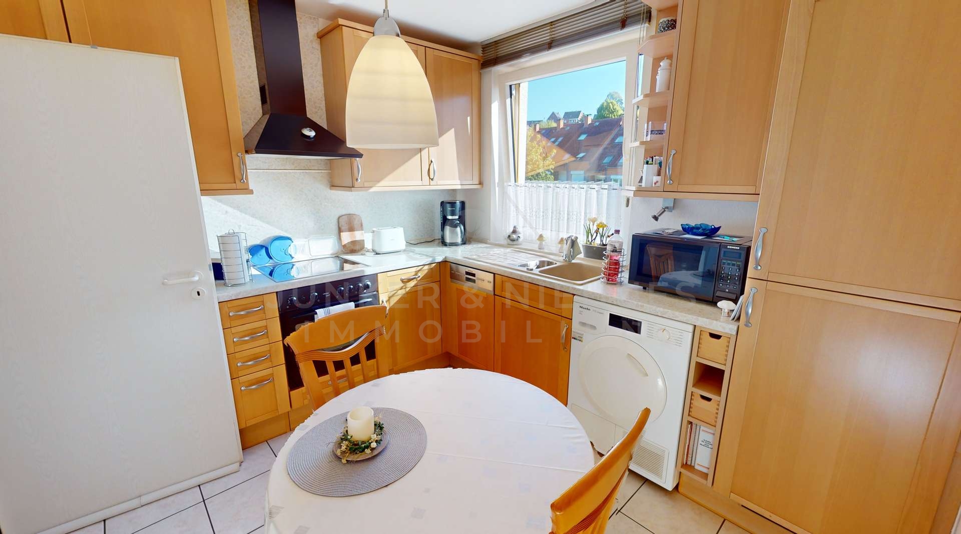Die Hauptwohnebene verfügt über eine gelungene Raumaufteilung: Neben der separaten Küche befindet sich hier ein komfortables Badezimmer, das mit Dusche und Wanne ausgestattet ist und somit für Alltag und Wellness gleichermaßen genutzt werden kann. Ein gemütliches Schlafzimmer sorgt für erholsame Ruhe, während der großzügige Wohn- und Essbereich das Herzstück der Wohnung bildet. Von hier aus gelangen Sie auf die sonnige Loggia, die zum Entspannen und Verweilen im Freien einlädt.