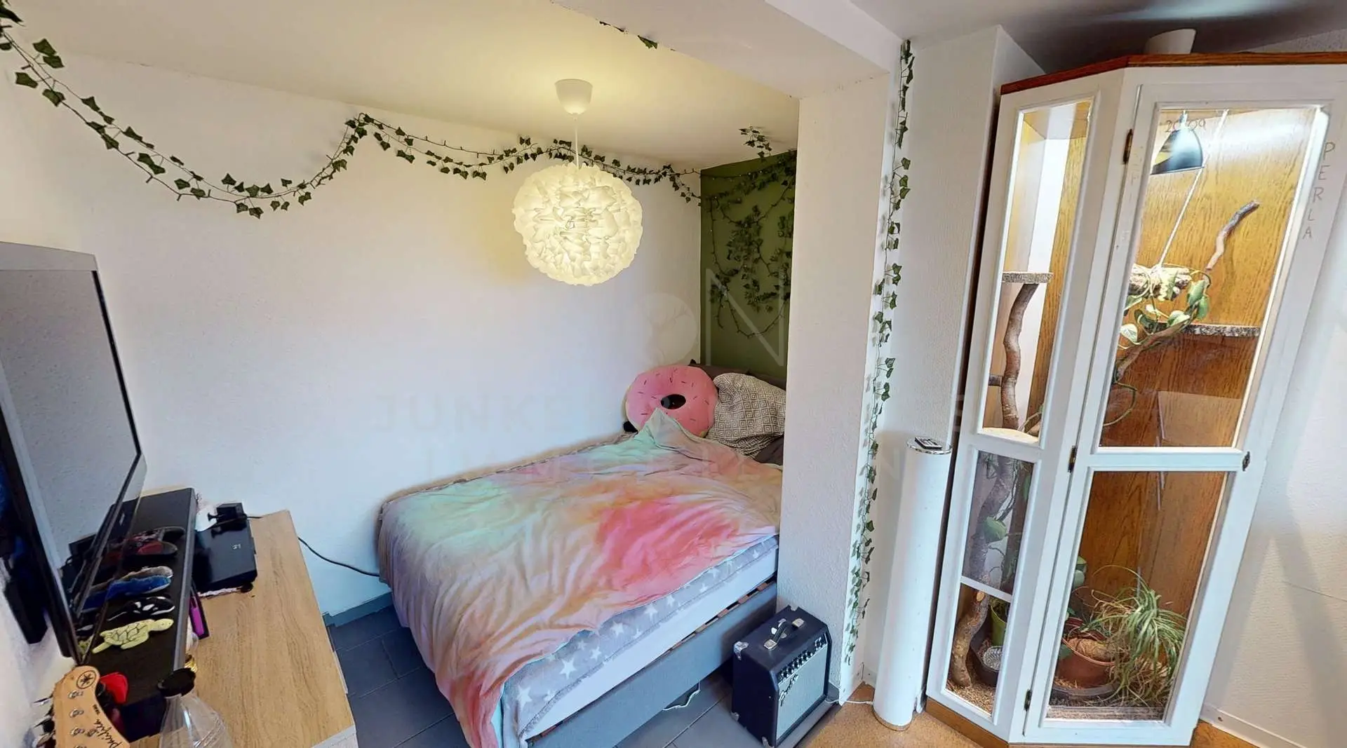 Ein weiteres freundliches Zimmer, das in zwei kleinere Einheiten aufgeteilt wurde, eignet sich ideal als Schlafzimmer, Kinderzimmer oder Spielbereich und bietet somit zusätzliche Flexibilität für individuelle Wohnbedürfnisse.